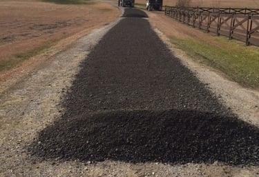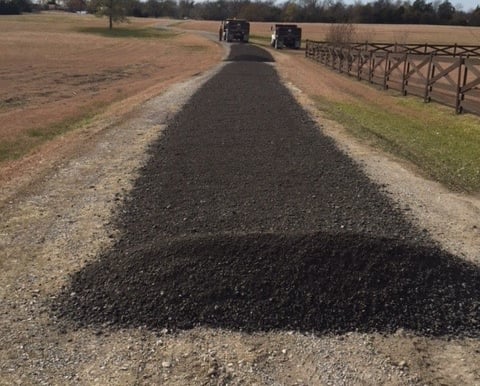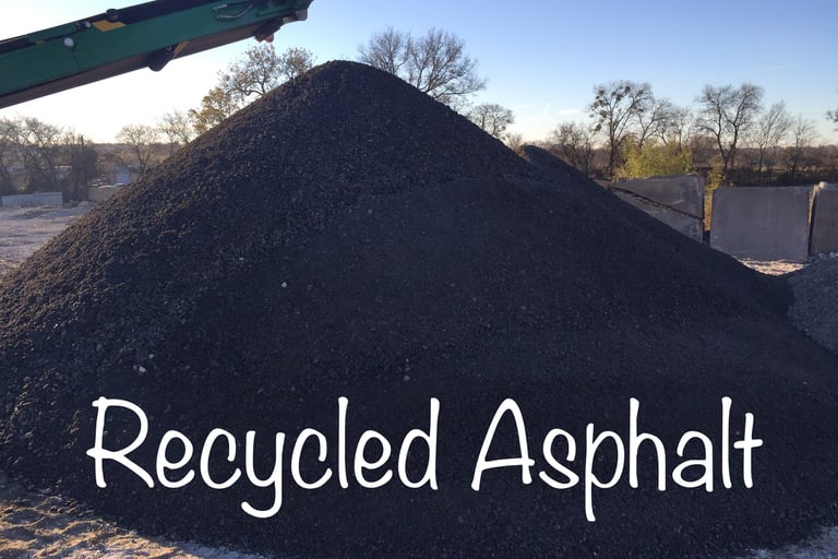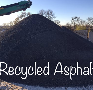 Recycled Asphalt, is a low-grade cold mix, is best used for temporary roads, dust suppression, and can be added as a top-coat layer to flex base as a means of “fine grading.”